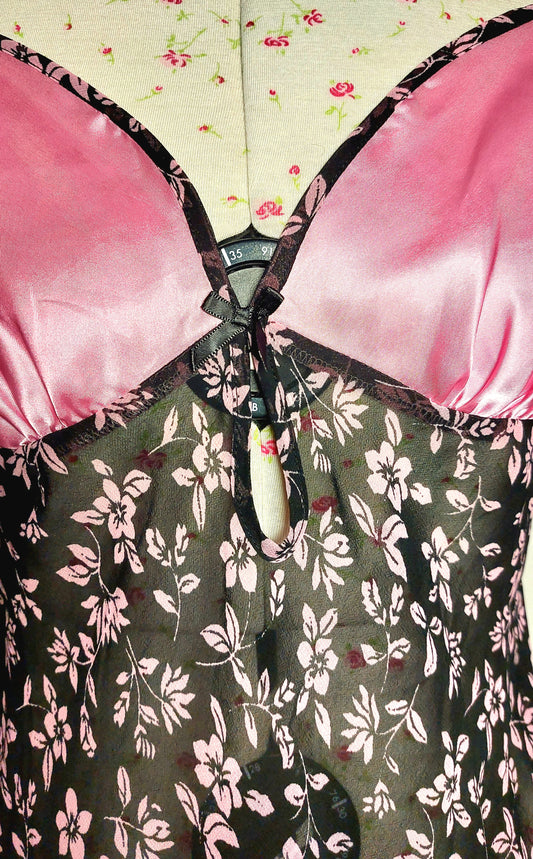 BLACK AND PINK FLORAL CAMISOLE DRESS