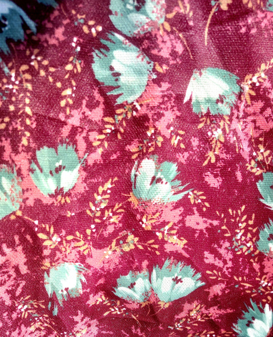 70'S LONG SLEEVED FLORAL BURGUNDY DRESS