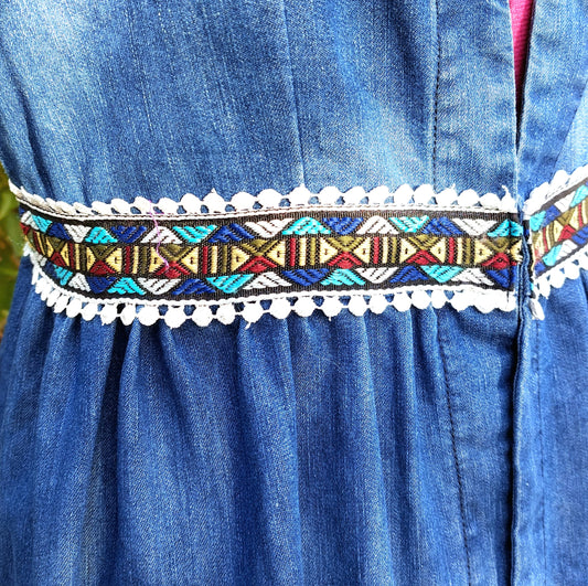 BLUE DENIM LONG LENGTH SLEEVELESS WAISTCOAT DRESS