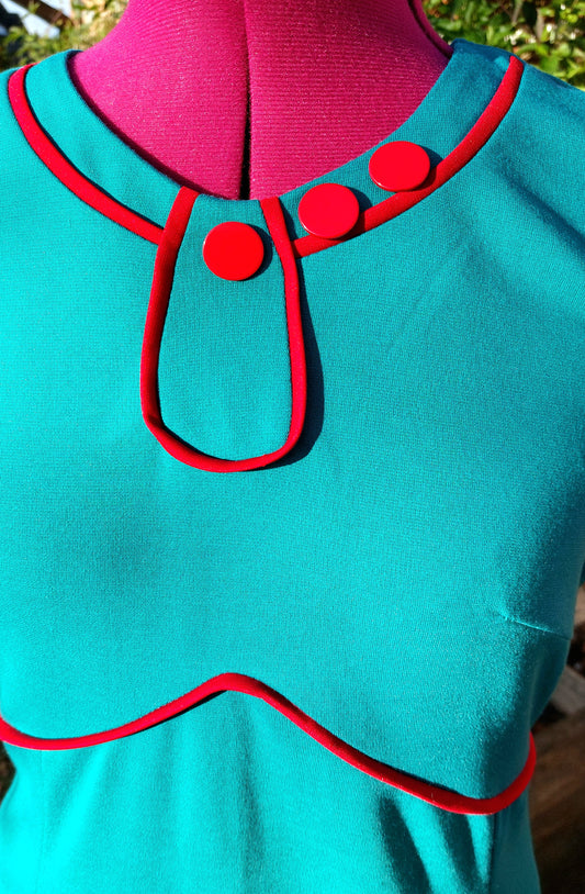 50'S STYLE TURQUOISE SHORT SLEEVE DRESS WITH RED DETAIL
