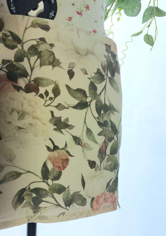 SIZE 10 MISSGUIDED CREAM FLORAL DENIM MINI SKIRT