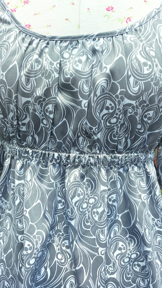 SIZE 8 H&M GREY PATTERNED SILKY FIT AND FLARE TOP