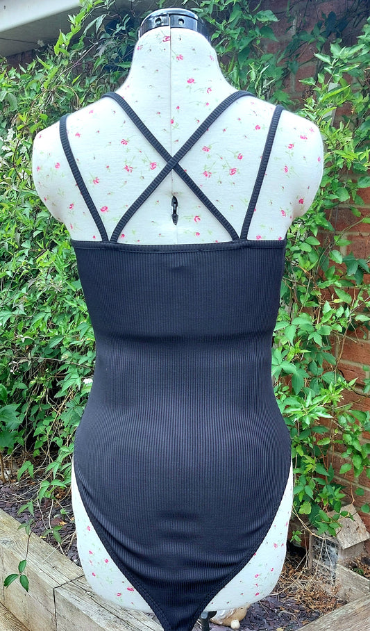 SIZE 8 BLACK NEW LOOK RIBBED DOUBLE STRAP BODYSUIT