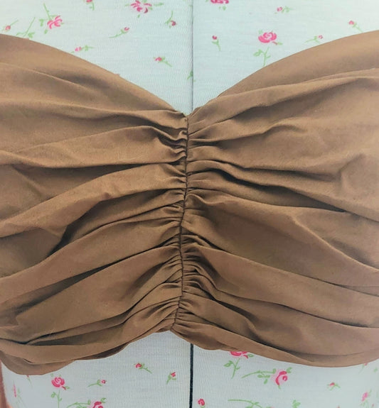 SIZE S ZARA CARAMEL LONG BALLOON SLEEVED RUCHED CROP TOP