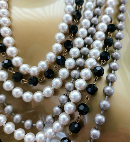LONG MULTI COLOURED PLASTIC BEADED NECKLACE