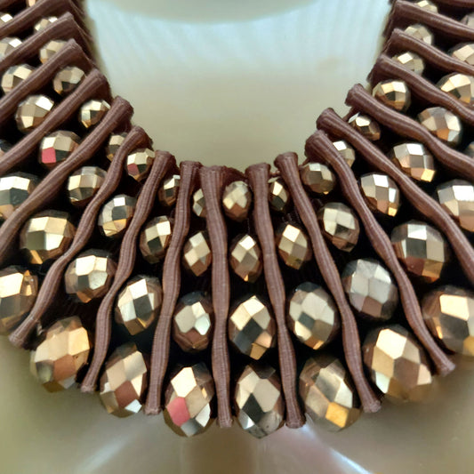CHOCOLATE AND BRONZE RIBBON RUFFLE NECKLACE