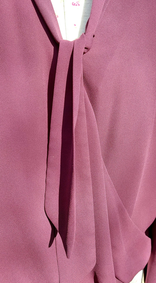 SIZE 6 AUBERGINE CHIFFON PUSSY BOW LONG SLEEVED BLOUSE