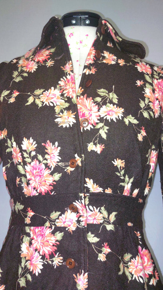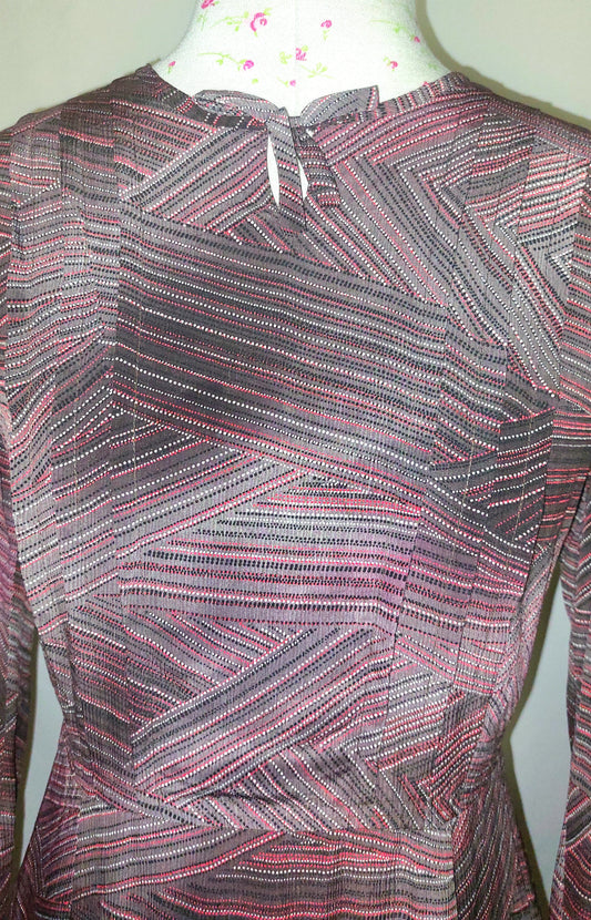 BROWN AND PINK PRINT LONG SLEEVED FIT AND FLARE DRESS