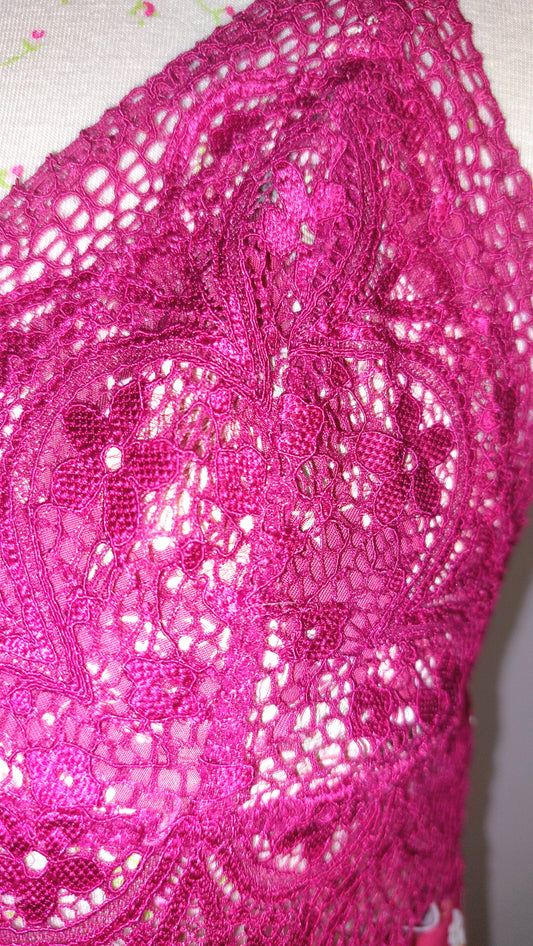 BURGUNDY FLORAL CAMISOLE DRESS WITH LACE BUST