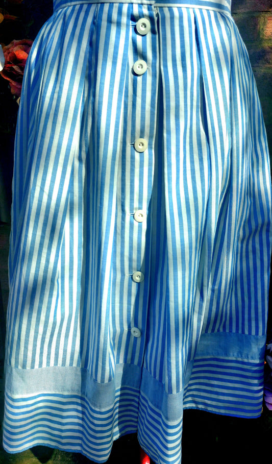 BLUE STRIPED LONG A LINE SKIRT