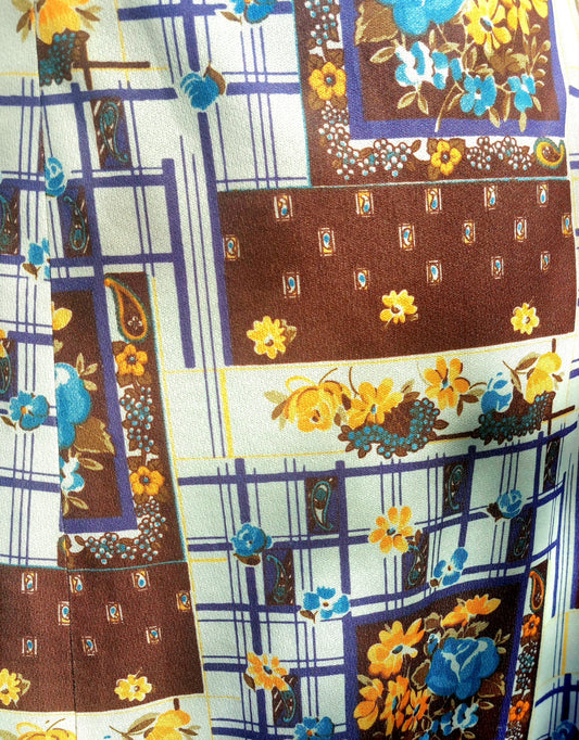 MISS MARY OF SWEDEN MULTI PRINT BROWN AND CREAM SILKY PLEATED SKIRT