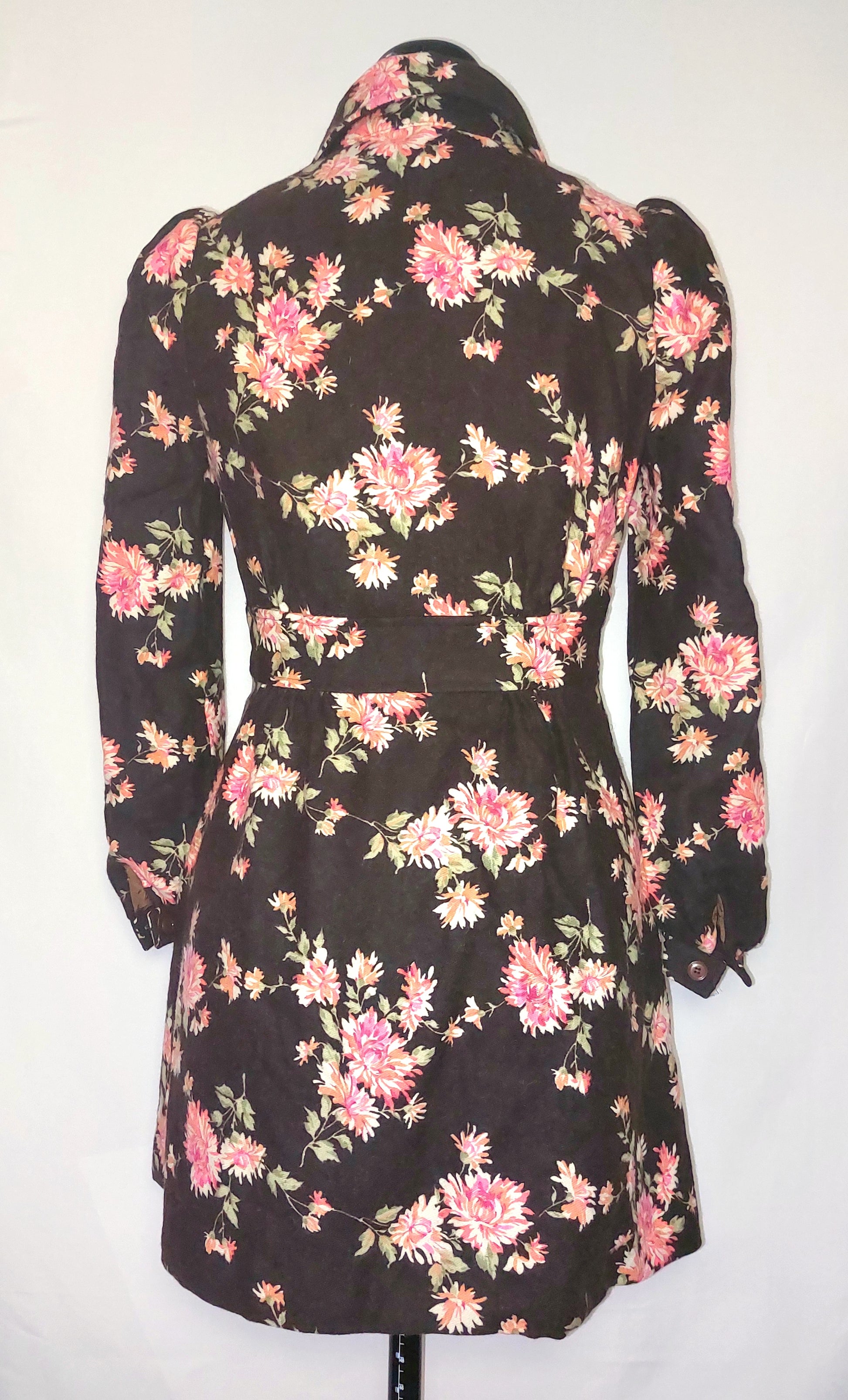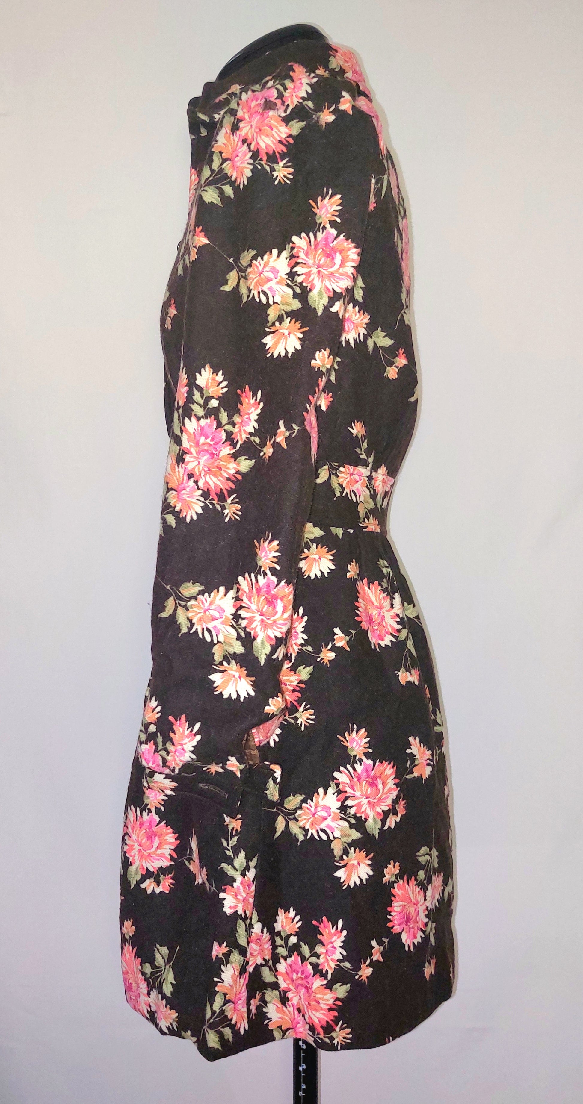Fit and flare design. Round edge collar. Long sleeves. Button down. Fully lined.