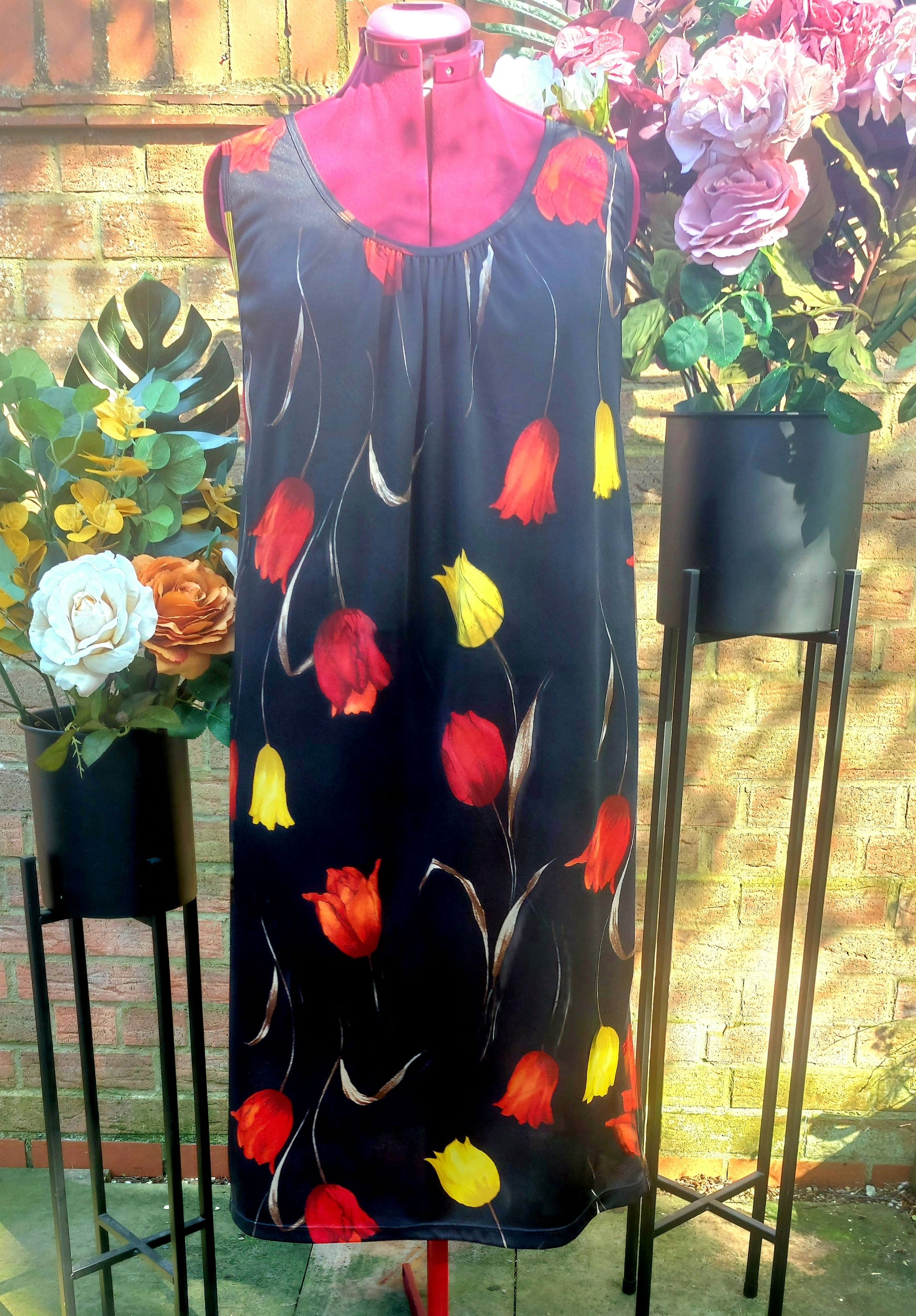 LONG BLACK TULIP SLEEVELESS TUNIC DRESS