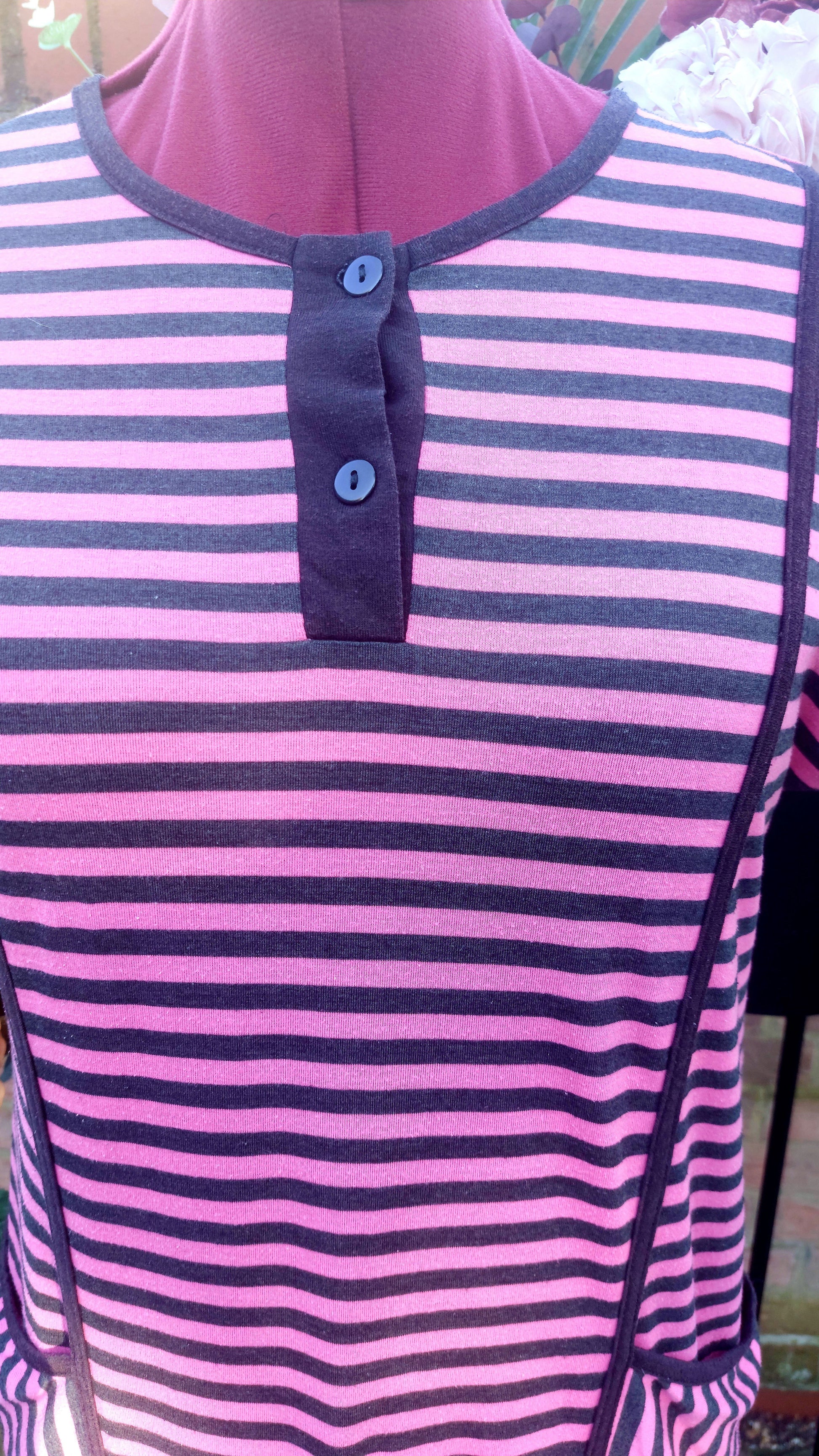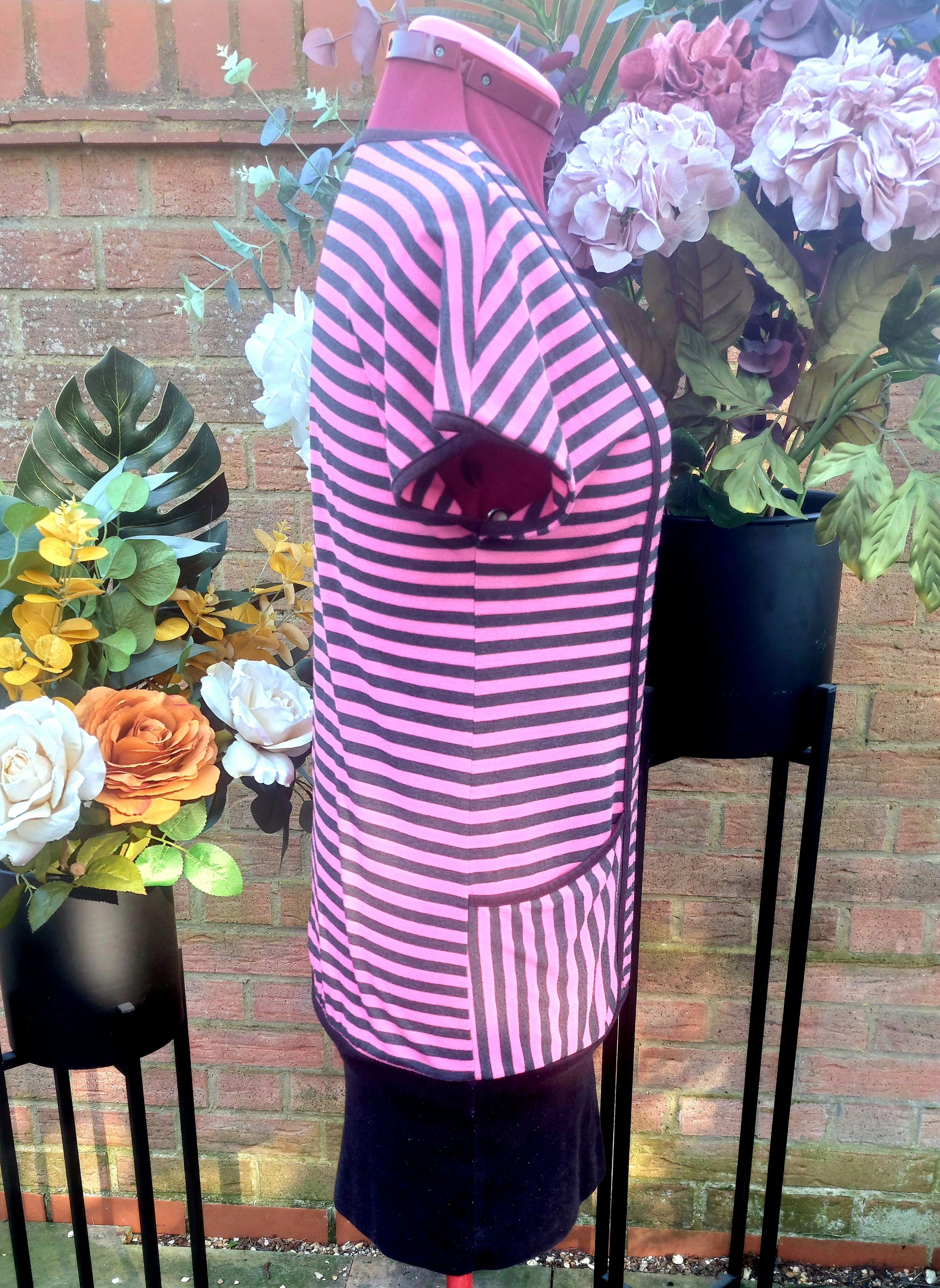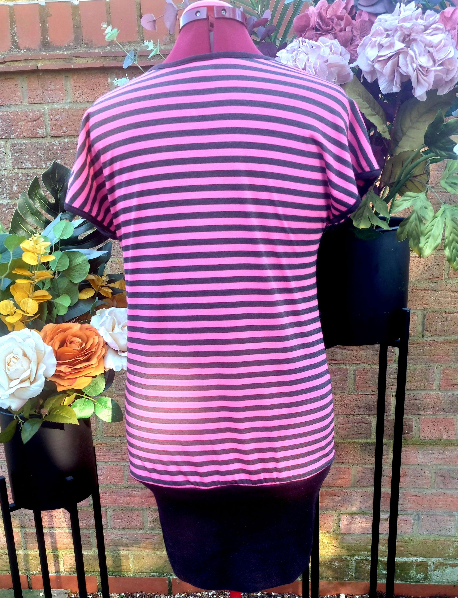 Total 80's iconic C&A T-shirt dress. Striking pink and black stripes.