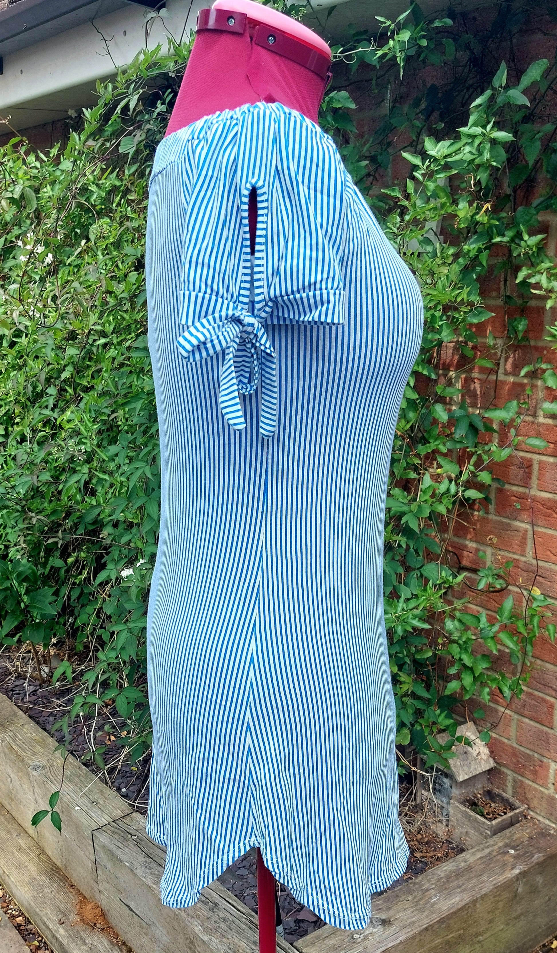 Nautical blue and white striped T-shirt dress/beach cover-up.
