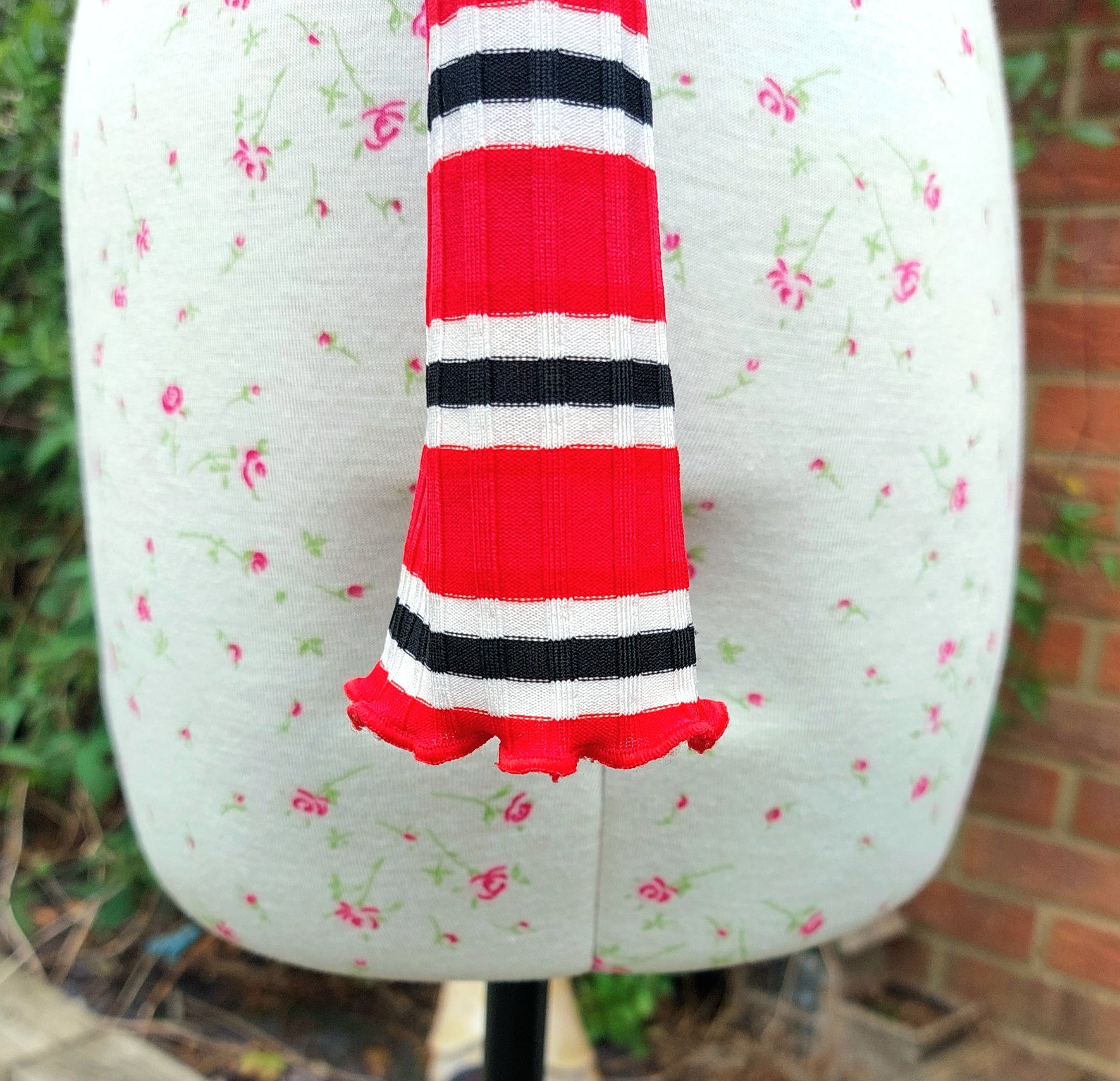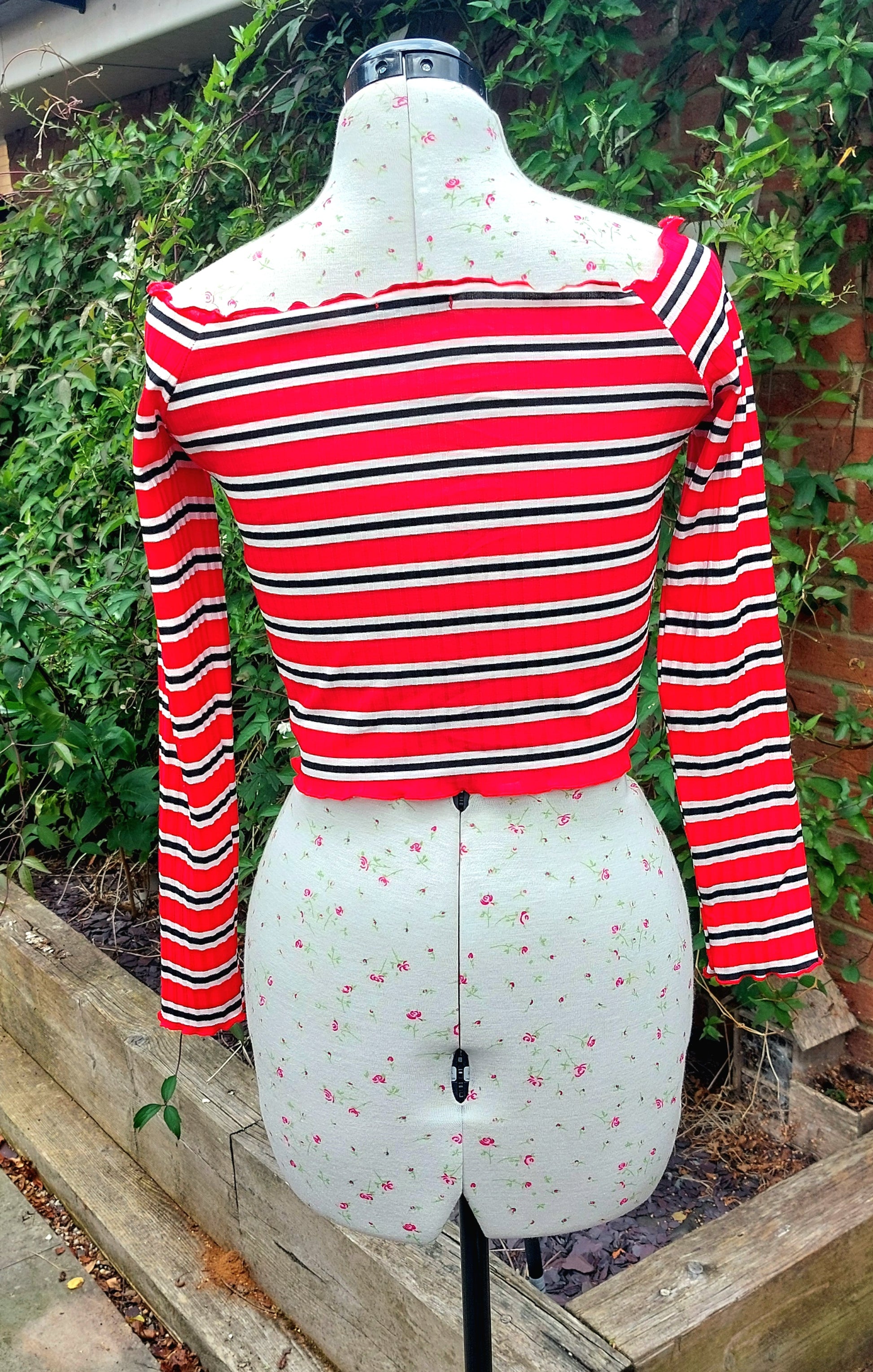 SIZE 10 BOOHOO RED STRIPED LONG SLEEVED CROP TOP