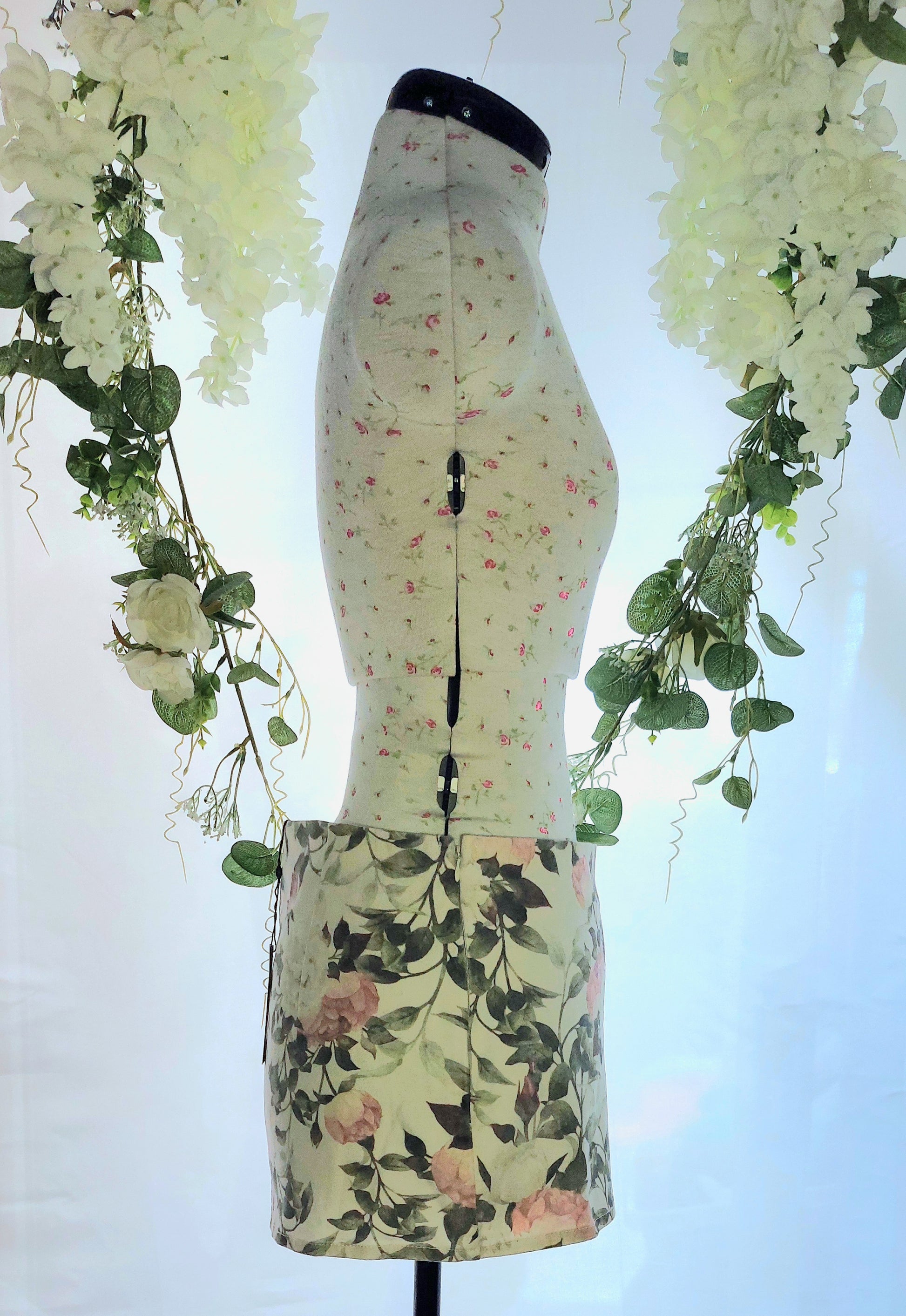 SIZE 10 MISSGUIDED CREAM FLORAL DENIM MINI SKIRT