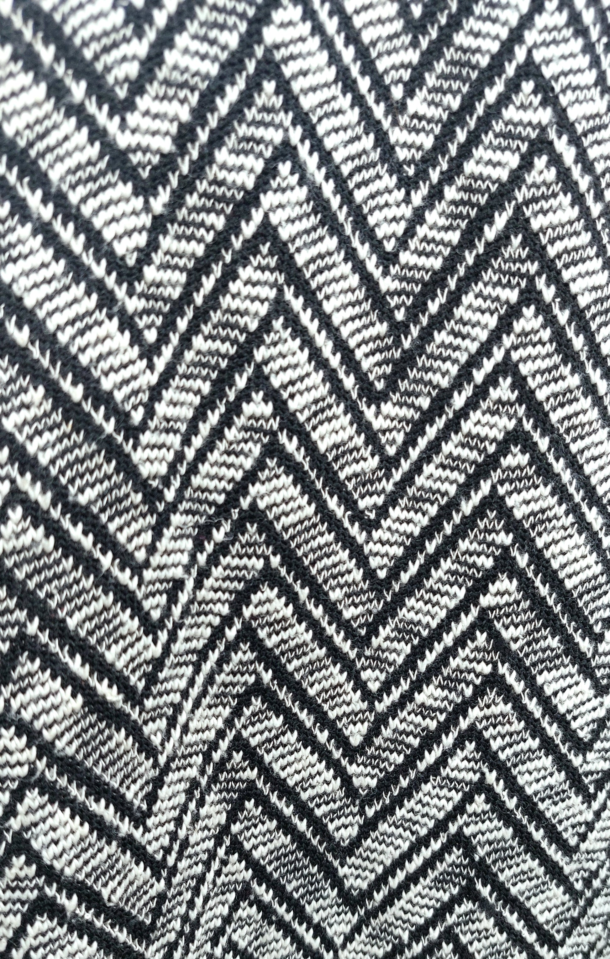 Black and white zig-zag pattern cardigan. Two front pockets.