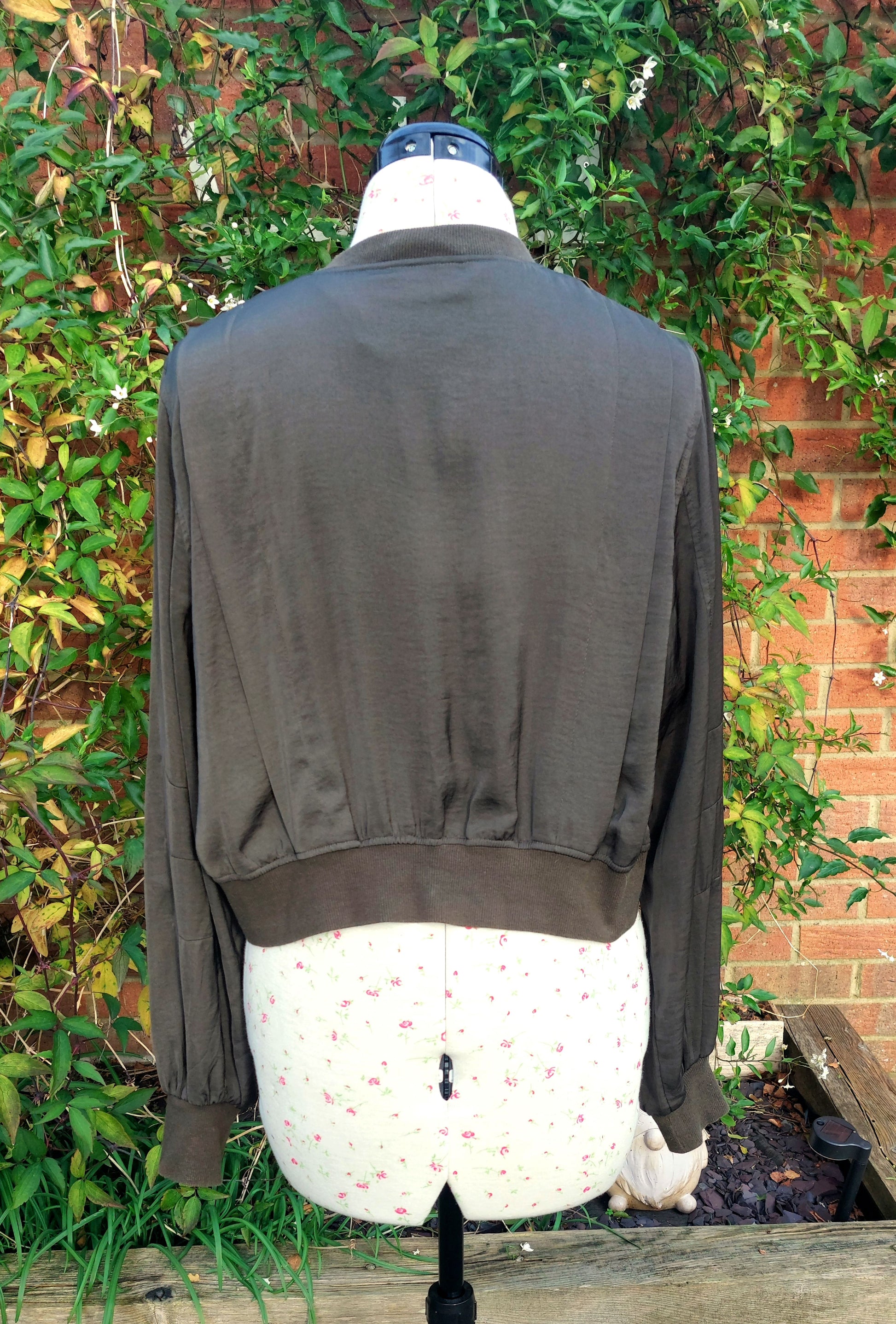 SIZE 14 DARK KHAKI SILKY BOMBER JACKET