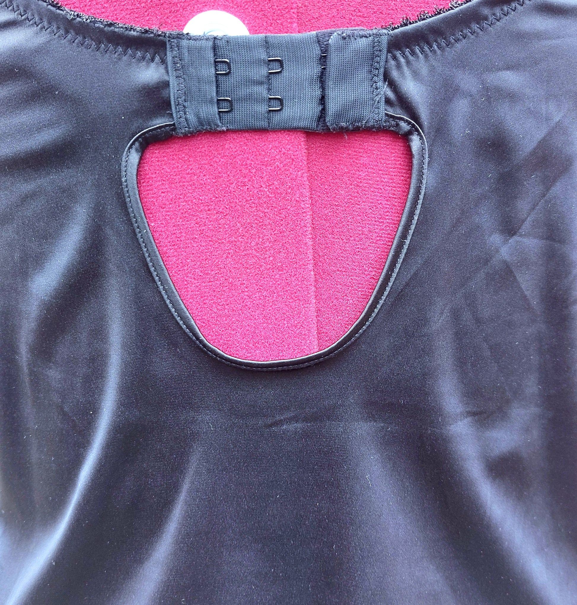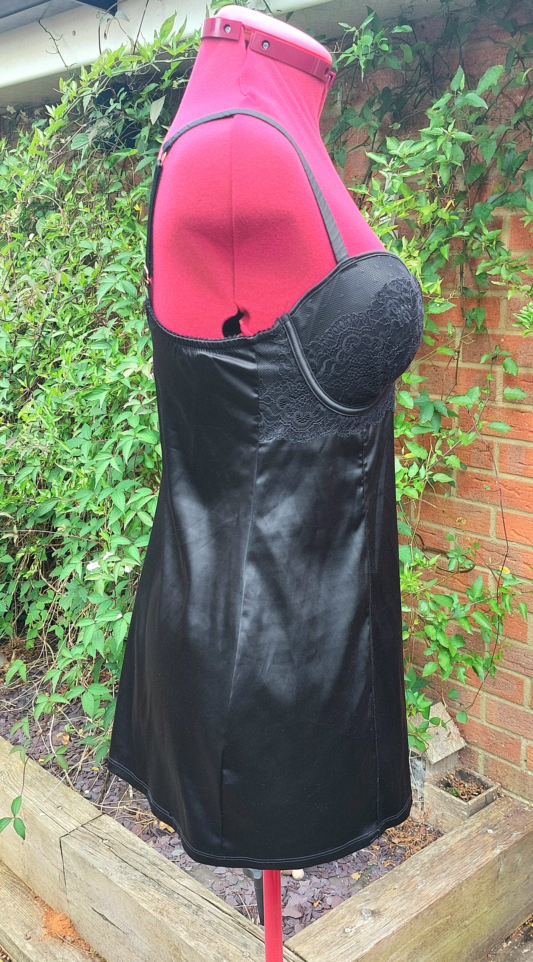 SIZE 36D BLACK SATIN PADDED BRA AND SLIP DRESS IN ONE