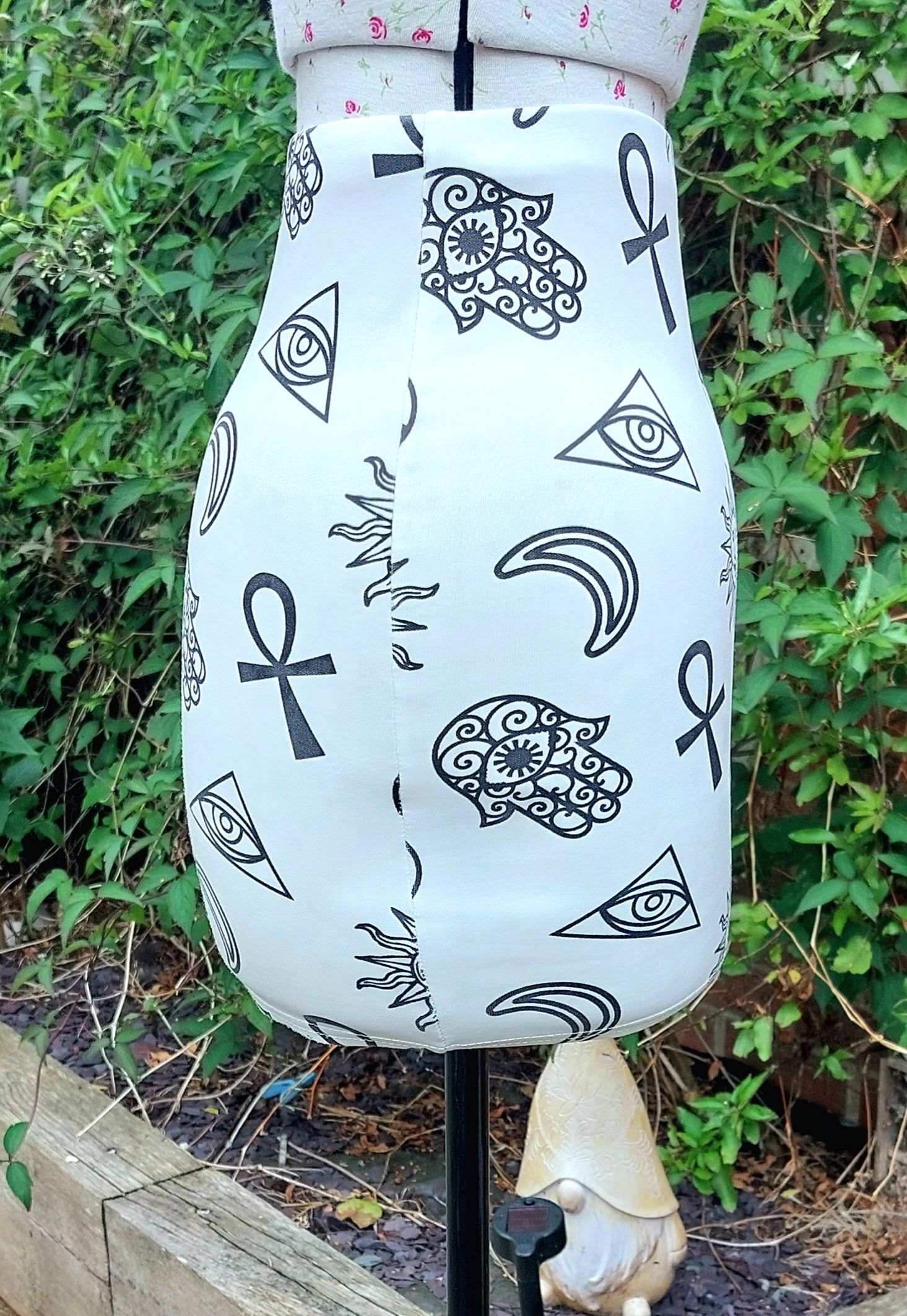 SIZE 6 MISSGUIDED WHITE MINI SKIRT WITH BLACK TATTOO MOTIFS