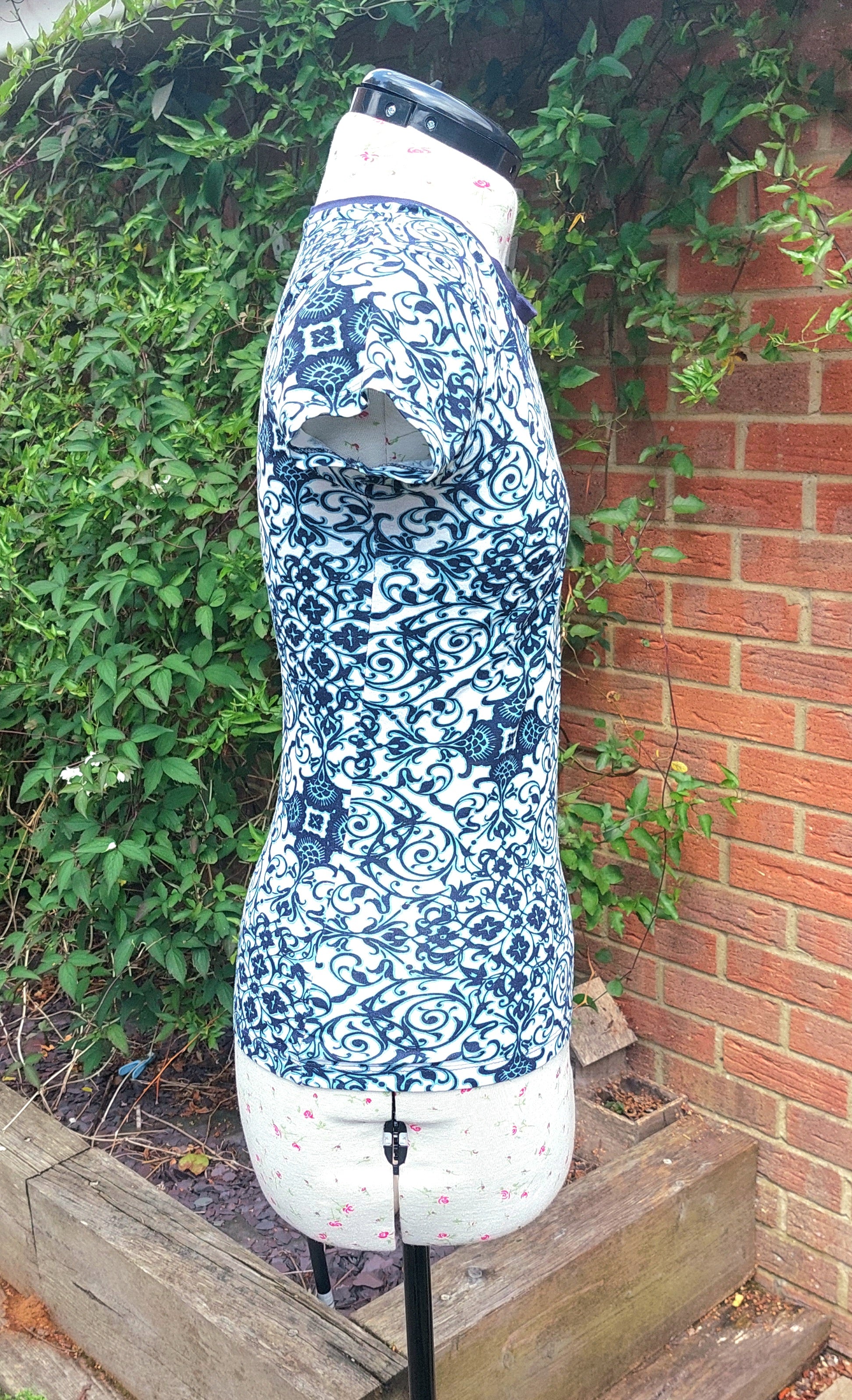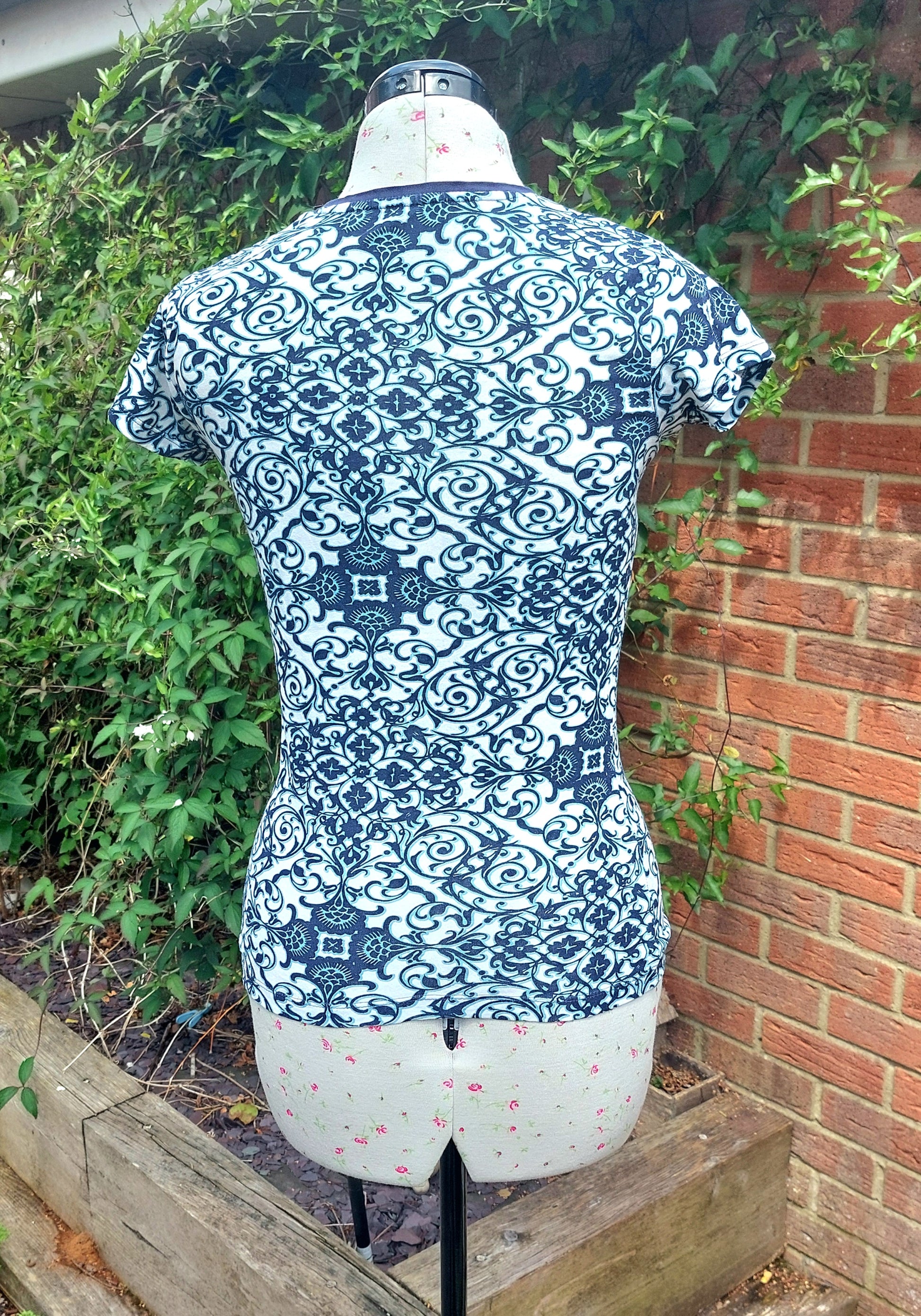 Highly patterned short sleeved cotton top.