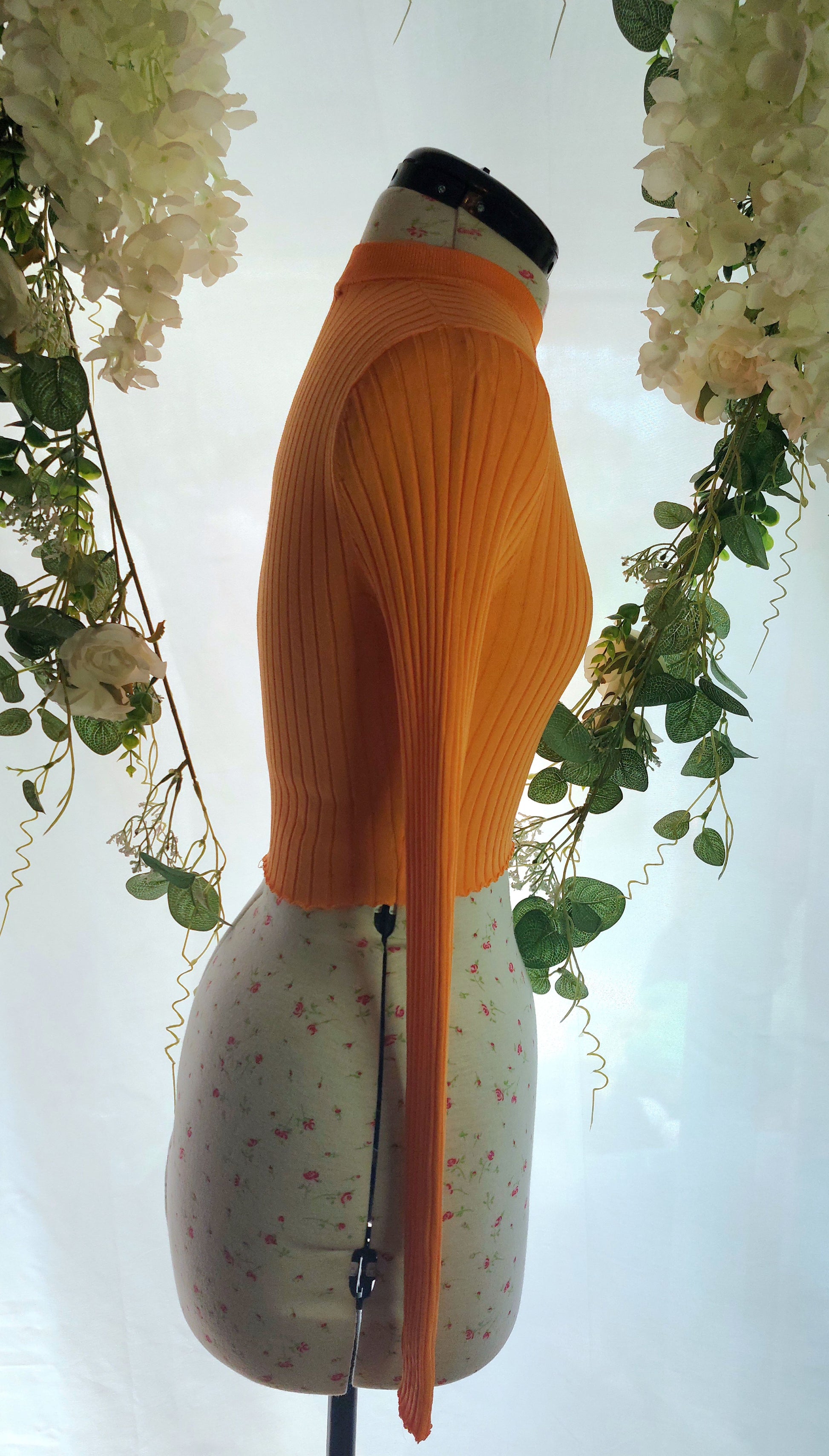 SIZE S ZARA LONG SLEEVED ORANGE RIBBED TOP