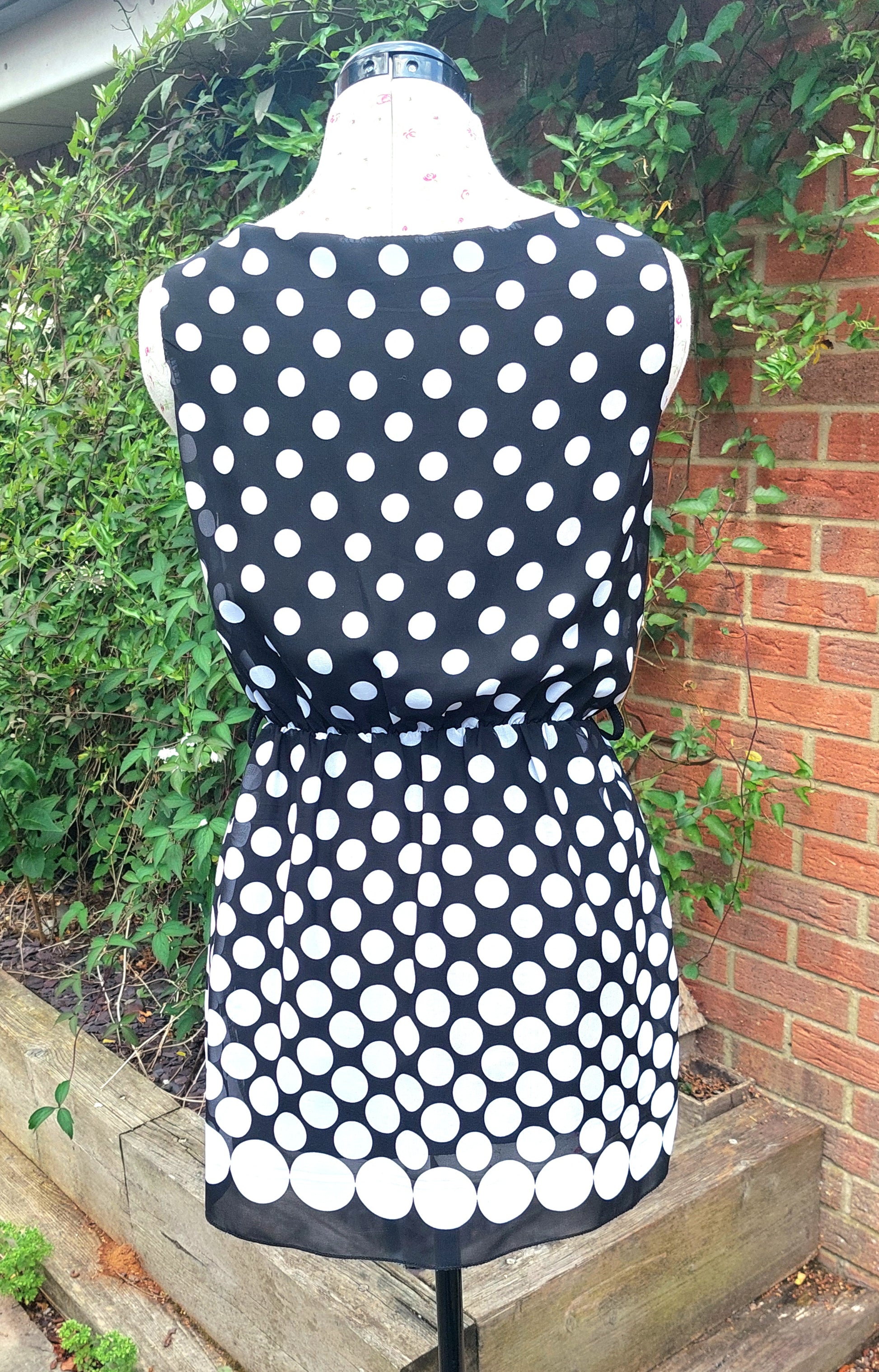 SIZE XS BLACK AND WHITE POLKA DOT COWL NECK MINI DRESS