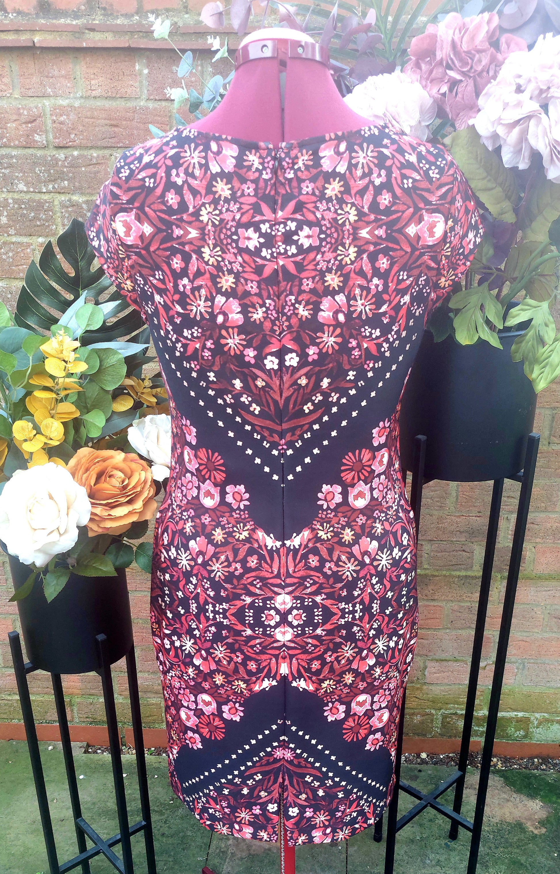 Capped sleeves, zip and hook and eye to the rear. Small split to the rear centre. Slight stretch to fabric.